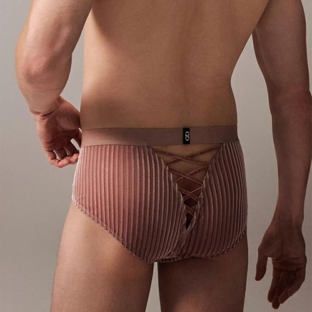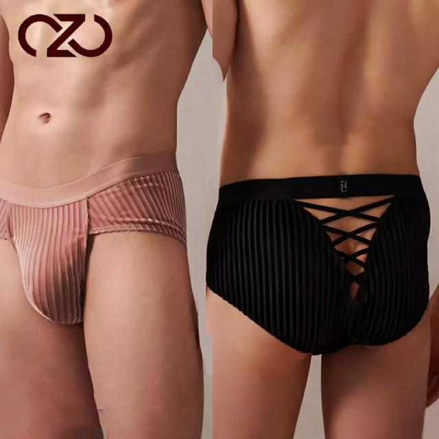 【半獣の内】ラグジュアリー メンズ ブリーフ トライアングルデザイン バックレースアップ プリーツ素材 立体ポーチ デザイナーズ下着