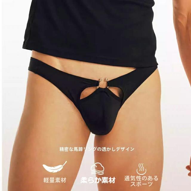 【半獣の内】メンズ ローライズTバック 馬蹄リングデザイン セクシー 三角パンツ 軽量 通気性 抗菌 防臭 男性下着