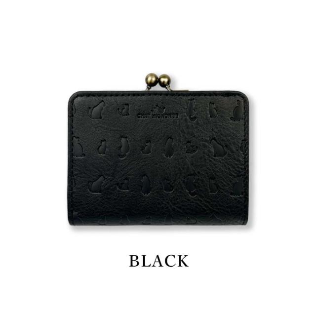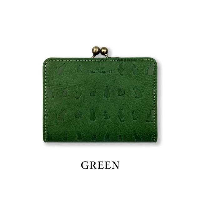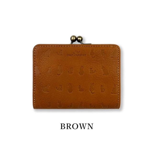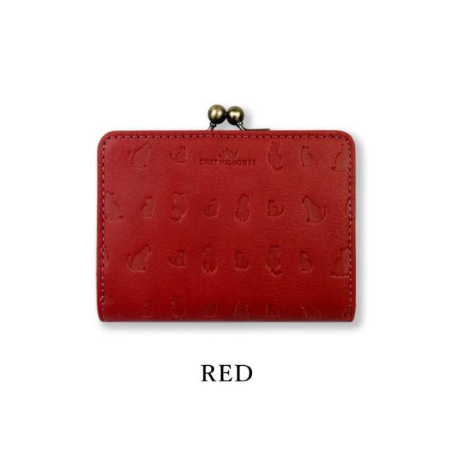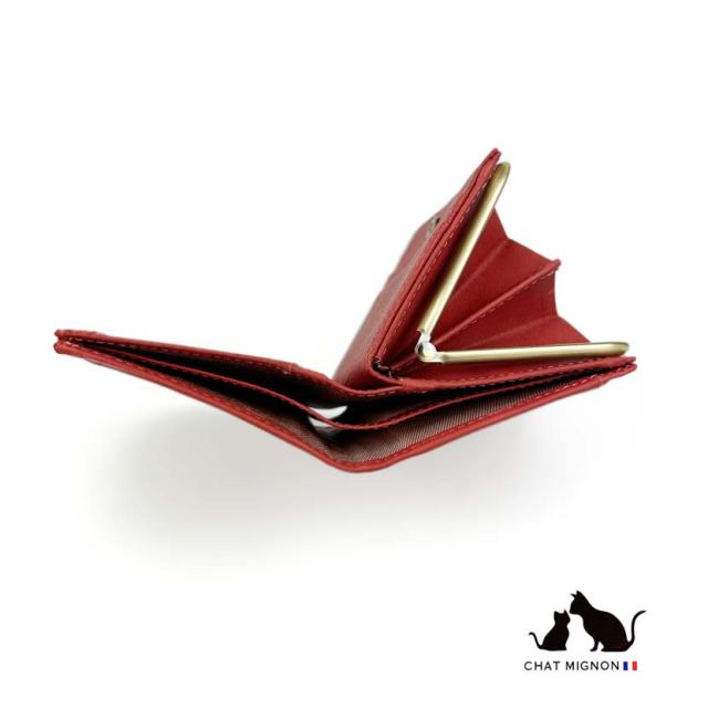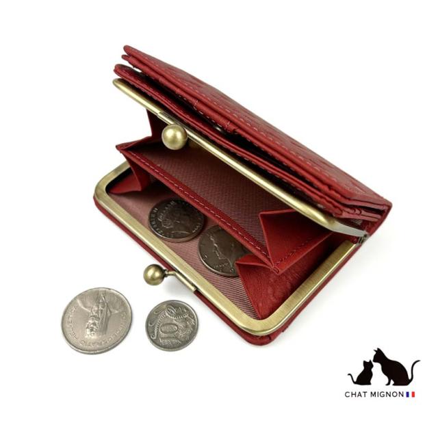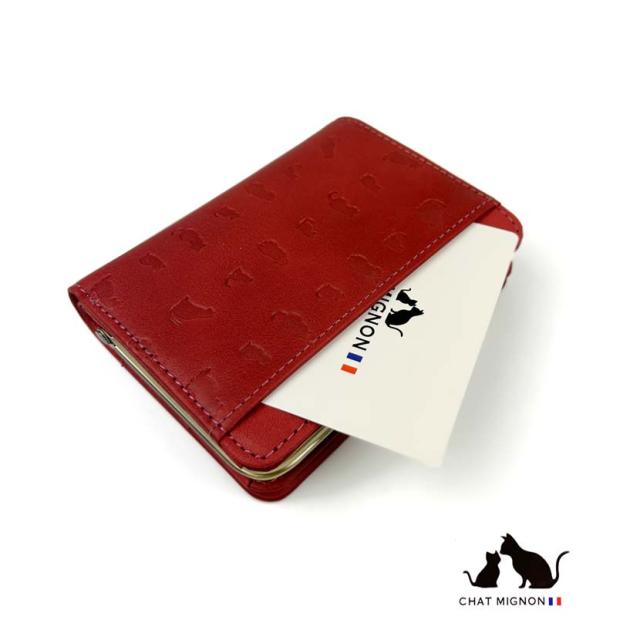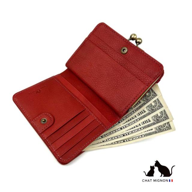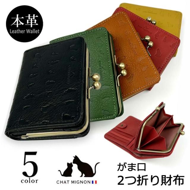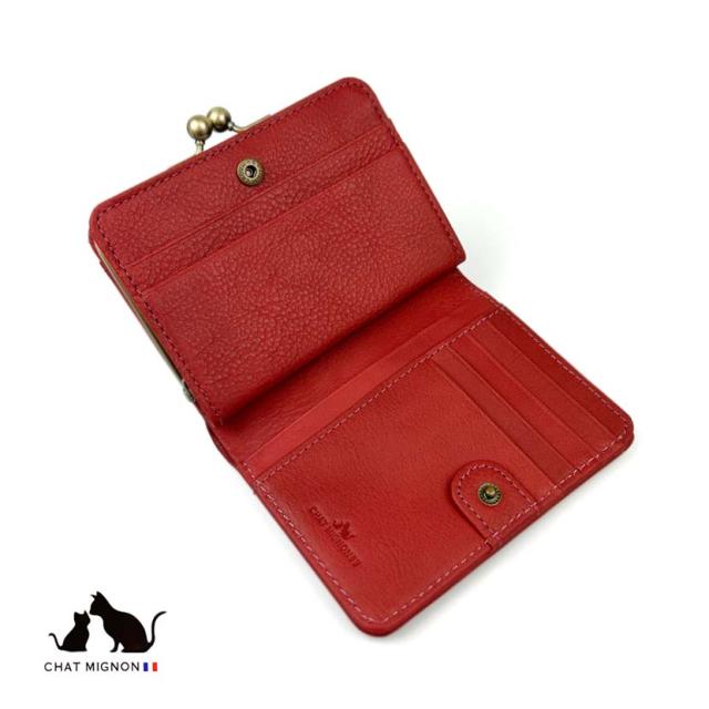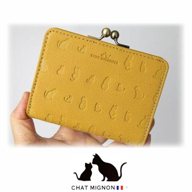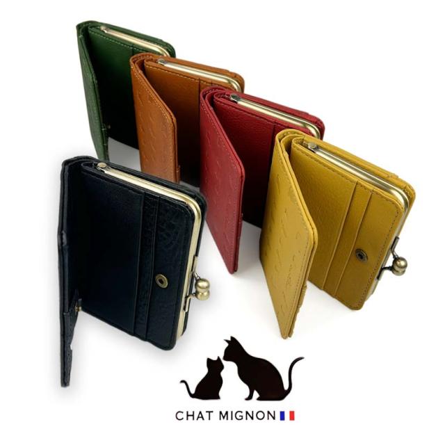 ガマ口 蛇腹 2つ折り財布 ウォレット シャーミニヨン 猫柄 本革 牛革 カウレザーリアルレザー ショートウォレット 小銭入れ CHAT MIGINON 猫 ねこ レディース メンズ 大人かわいい ギフト プレゼント cm0004 送料無料 父の日