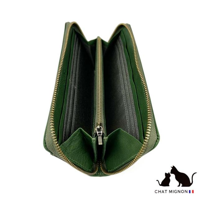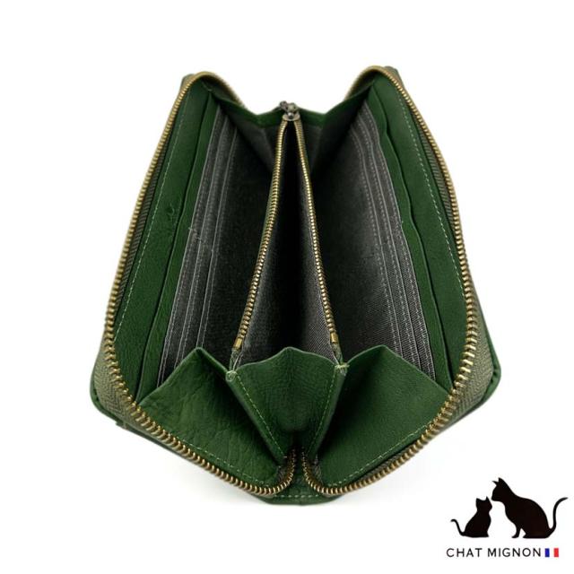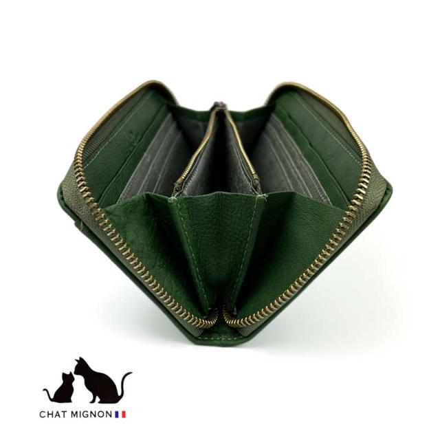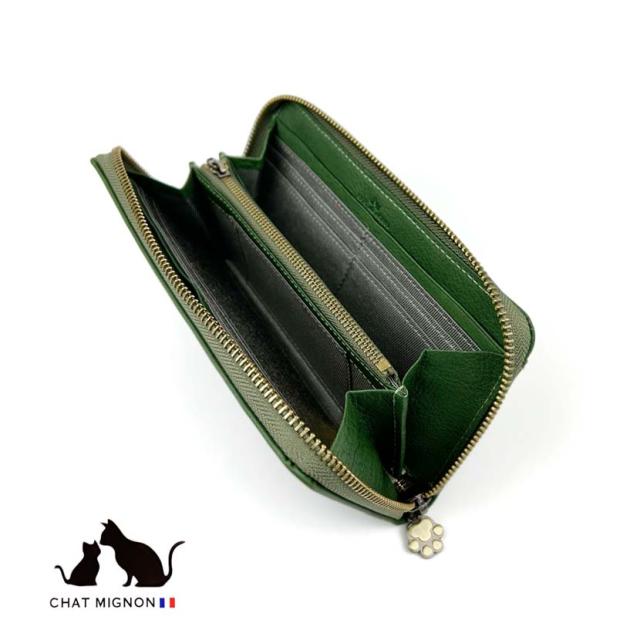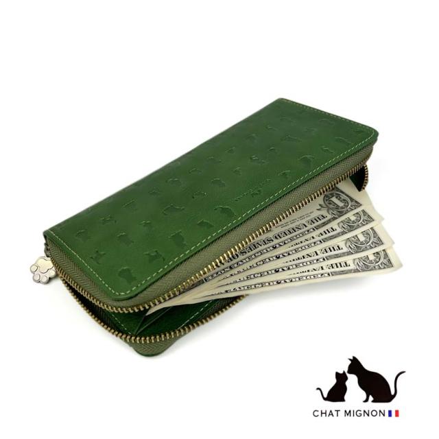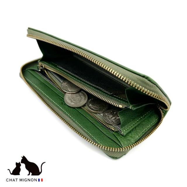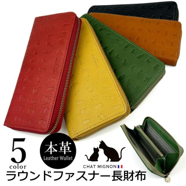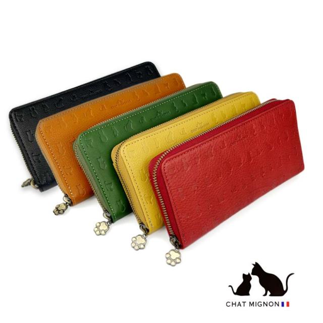 ラウンドファスナー 長財布 ウォレット シャーミニヨン 猫柄 本革 牛革 カウレザーリアルレザー 小銭入れ CHAT MIGINON 猫 ねこ レディース メンズ 大人かわいい ギフト プレゼント cm0006 送料無料 父の日 クリスマス