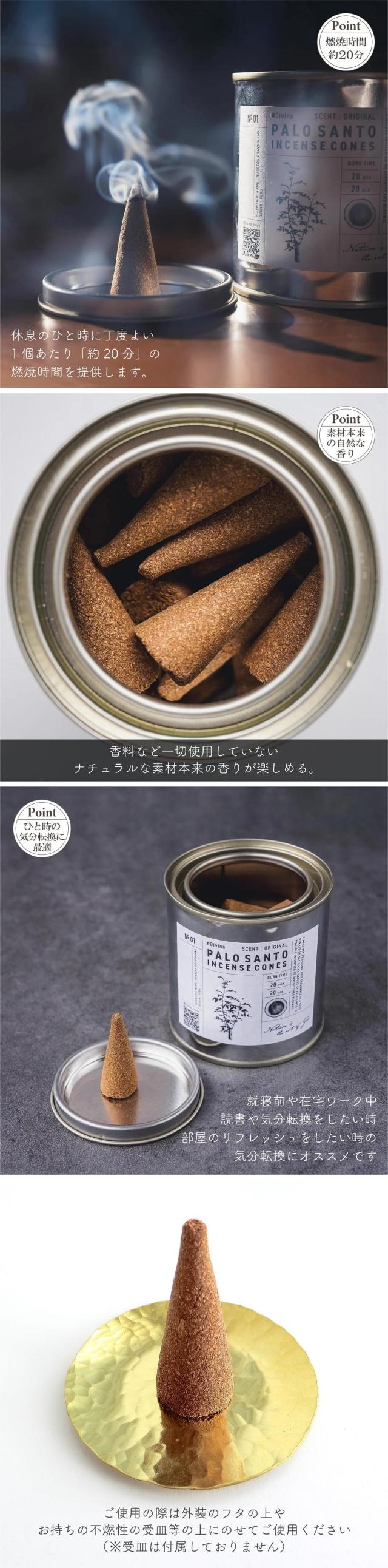 アロマ お香 Divina ディヴィーナ パロサント コーンインセンス 20個入 缶箱入り 香木 天然原料 ナチュラル 大型 コーン型 浄化 芳香 いい香り おしゃれ ギフト