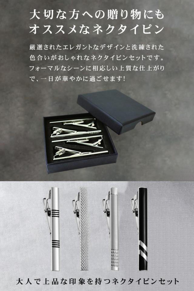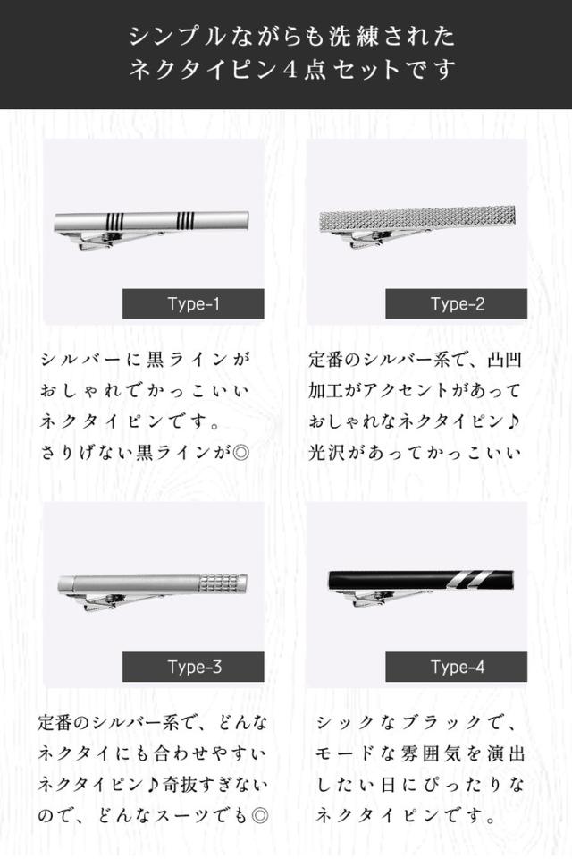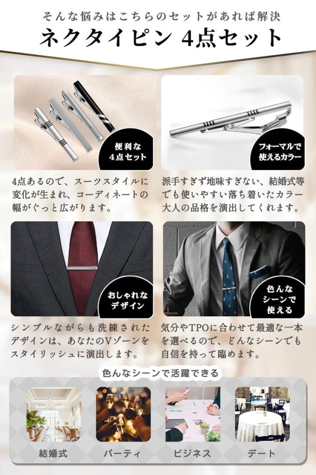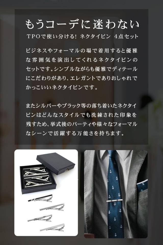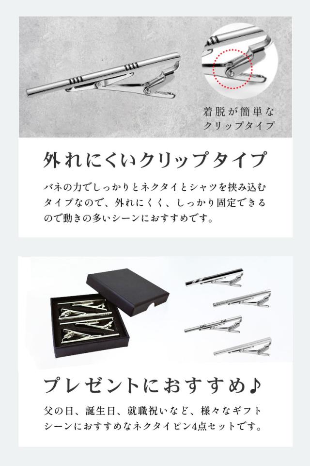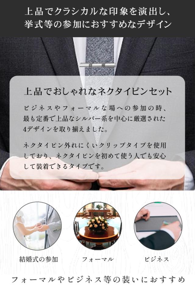 ネクタイピン タイピン セット 4点セット おしゃれ 高級 真鍮 プレゼント メンズ 男性 父の日 結婚式 ネクタイ シルバー ビジネス フォーマル ブランド