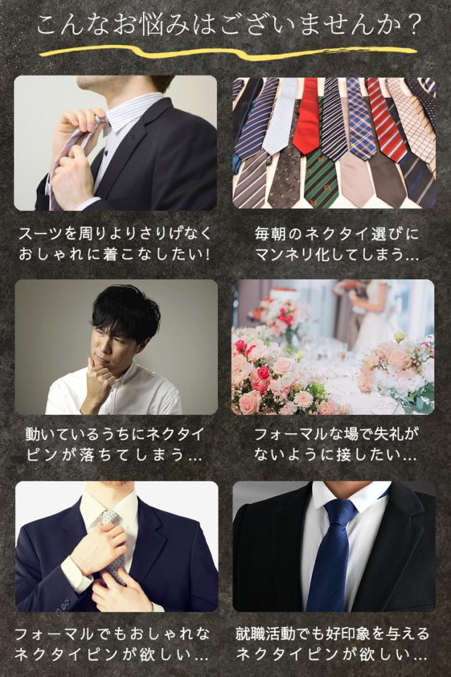 | 商品紹介 | 【スーツスタイルを格上げする♪ネクタイピン 4点セット】 シルバー系中心のネクタイピンセットなので、色んなシーンで使いやすいです ギフトボックス付きなので、プレゼントとしてもおすすめ♪ 【ポイント1 便利な4点セット】 4点もあるネクタイピンなので、毎日のスーツスタイルのコーディネートの幅が広がります 奇抜すぎないので、ビジネスだけでなくプライベートでも使いやすい♪ 【ポイント2 おしゃれなデザイン】 シンプルながら洗練されたデザインで、スーツのVゾーン部分をスタイリッシュに演出します ラインや凸凹加工等がされていておしゃれなデザインです 【ポイント3 色んなシーンで使える】 派手すぎず地味すぎないデザインなので、ビジネスや結婚式、プライベートで使いやすいデザインです 落ち着いたカラーが、大人の品格を演出してくれます 【ポイント4 外れにくいクリップタイプ】 バネの力でしっかり挟み込むクリップタイプなので、外れにくくしっかり固定できます 動きが多いシーンにおすすめです 【ポイント5 ギフトボックス付き】 父の日、誕生日、就職祝いなど、様々なギフトシーンにおすすめなギフトボックス付きネクタイピン4点セットです |