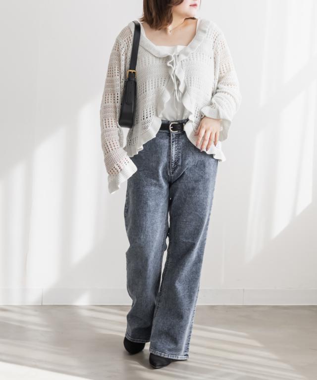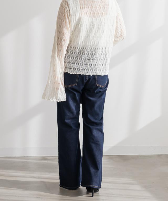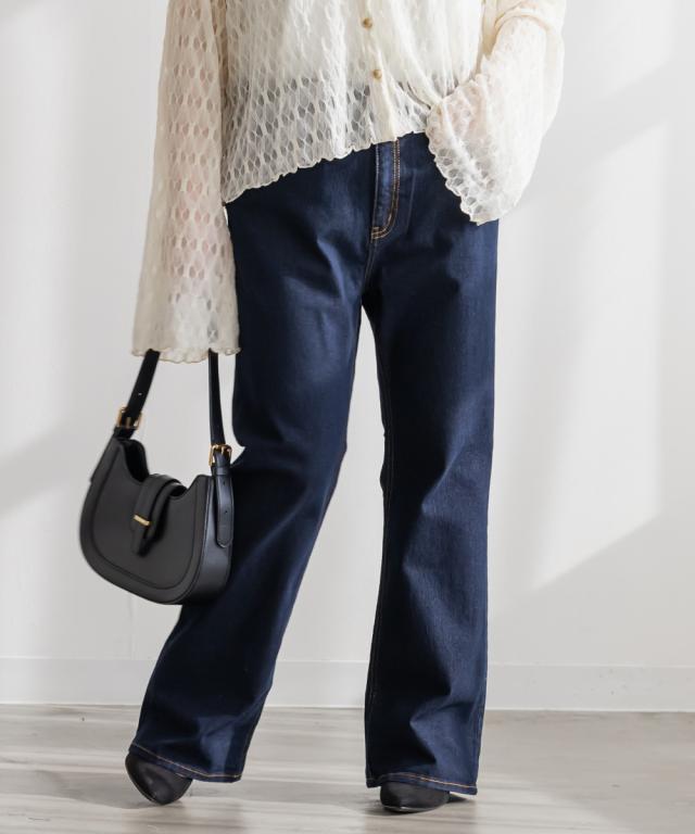| LLサイズを着用してぴったりのサイズ感でした。ストレッチが効いていて窮屈感のない着心地です!デニムでもカジュアルになりすぎずに女性らしい印象になれるフレアシルエットで、美脚に見えるのでどんなトップスでも合わせやすい形なのが嬉しいです♪定番のデニムカラーでオールシーズン使えて1本あると便利なデニムパンツです。 |