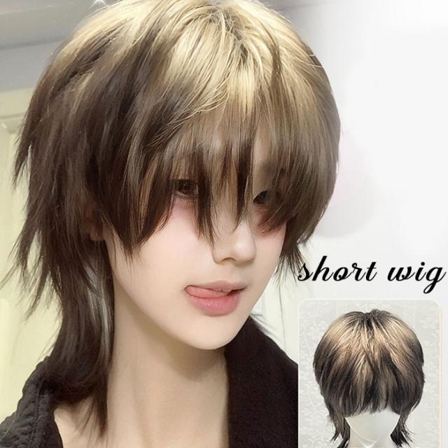 ウィッグ ショート ウルフ 自然 フルウィッグ イケメン 男装 メッシュ ハイライト ウルフカット レディース メンズ 男女兼用 医療用 かつら 金髪 茶髪 コスプレ ハロウィン 普段使い 韓国 アイドル 小顔 かっこいい 耐熱