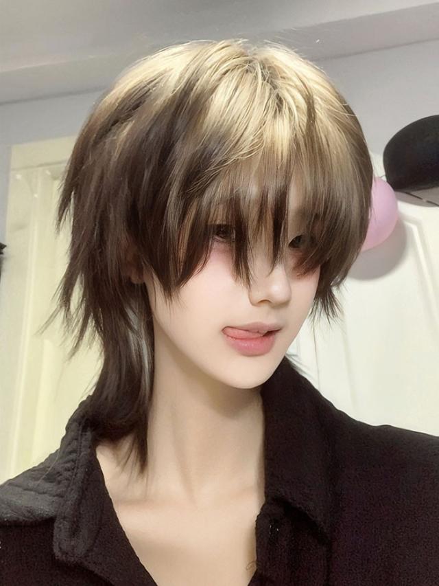 ウィッグ ショート ウルフ 自然 フルウィッグ イケメン 男装 メッシュ ハイライト ウルフカット レディース メンズ 男女兼用 医療用 かつら 金髪 茶髪 コスプレ ハロウィン 普段使い 韓国 アイドル 小顔 かっこいい 耐熱 bc114n1n1x7