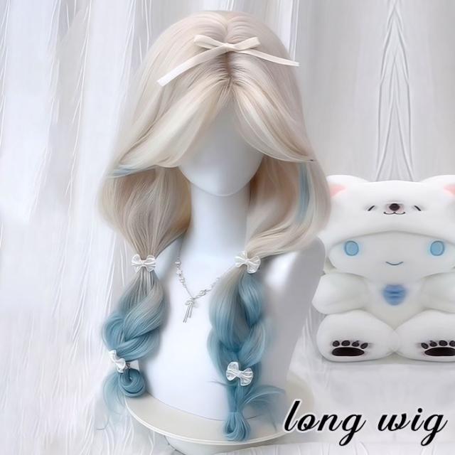 ウィッグ ロング 自然 フルウィッグ グラデーション カール 天使界隈 ゆめかわ ロリータ 水色 白 ホワイト 青 ブルー ウェーブ サブカル 原宿系 耐熱 コスプレ ハロウィン レディース かつら 医療用 女性 小顔 派手髪 アッシュ bc113n1n1x7