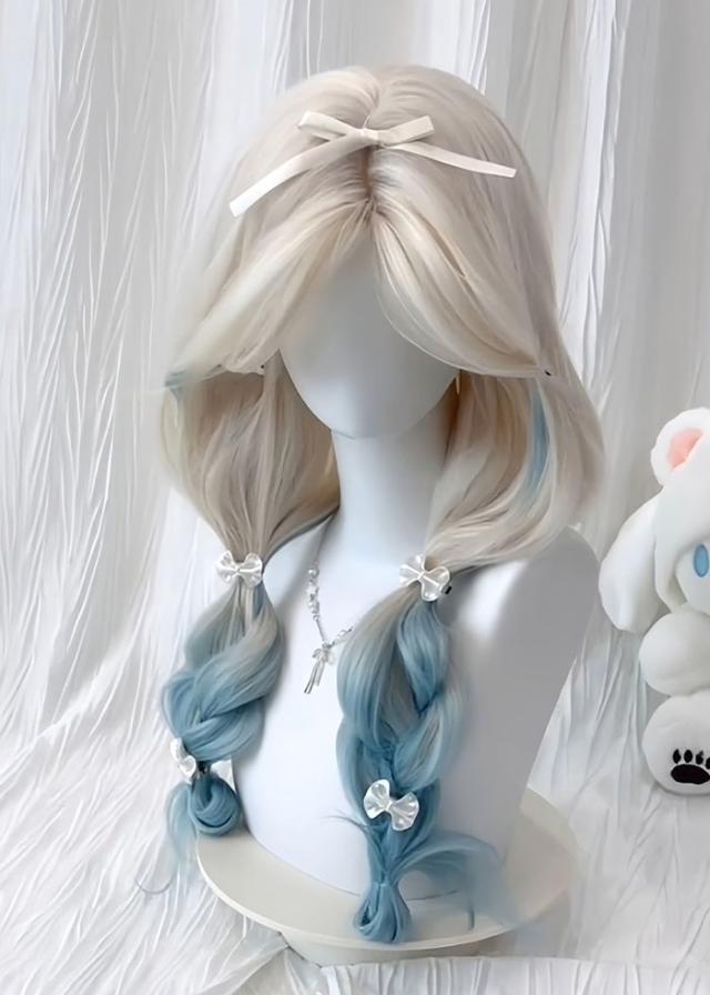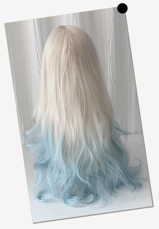 ウィッグ ロング 自然 フルウィッグ グラデーション カール 天使界隈 ゆめかわ ロリータ 水色 白 ホワイト 青 ブルー ウェーブ サブカル 原宿系 耐熱 コスプレ ハロウィン レディース かつら 医療用 女性 小顔 派手髪 アッシュ