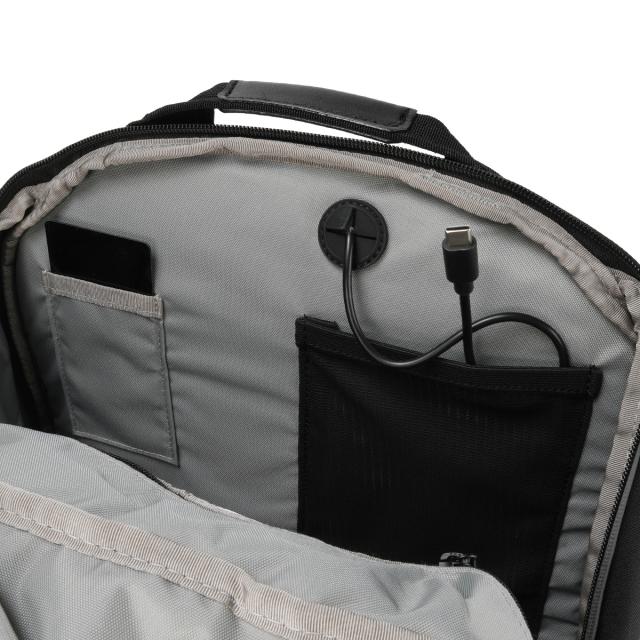 充電ケーブルを外部に通せるケーブルパス機能。モバイルバッテリーをバッグ内に入れたまま、スマートに充電できます。
