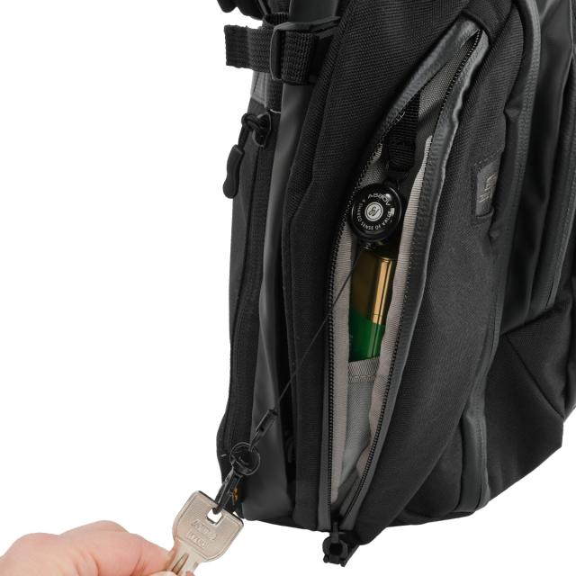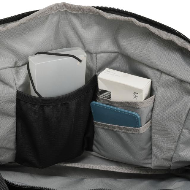 折り畳み傘やボトルを収納できるポケットを配置し、どんなシーンでもスタイリッシュに持ち運べます。
