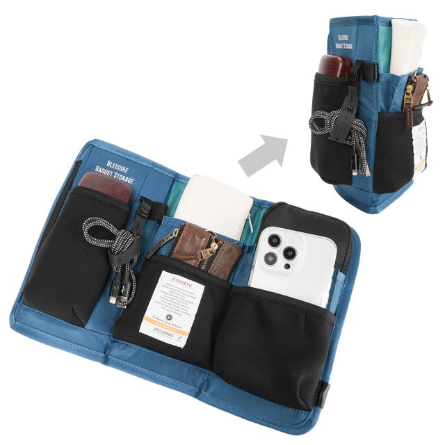 スマートフォンやモバイルバッテリー、その他のガジェットを自由に配置できる取り外し可能なガジェットボード。