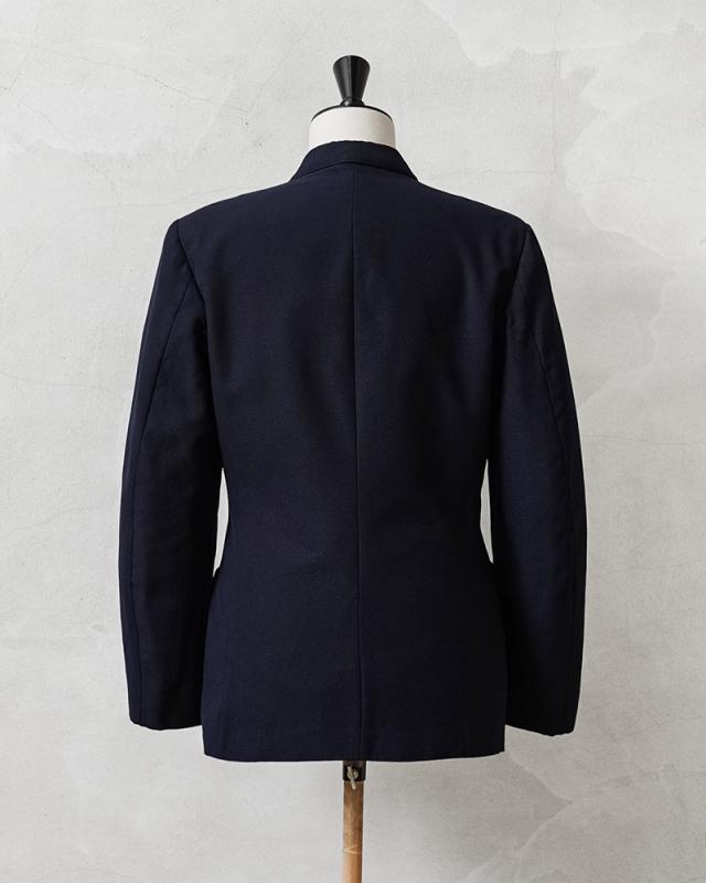 希少なスウェーデン海軍の士官や下士官向けのドレスジャケットが入荷しました。力強さを感じさせる幅広のピークドラペル(剣襟)が特徴的なダブルブレストのブレザージャケット。 フロントに2箇所のフラップポケット、両側に内ポケットも備えています。ウールの持つ保温性・上品さと、耐久性・イージーケア性を併せ持つ機能的なウール混ポリエステル素材で、内側には滑りの良いメッシュ素材の裏地が袖先まで付属しています。深みのあるダークネイビーに、スウェーデン王国の国章である三つの王冠(トリプルクラウン)と海軍を象徴する錨マークが刻印されたゴールドボタンが高級感と特別感を感じさせます。