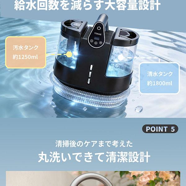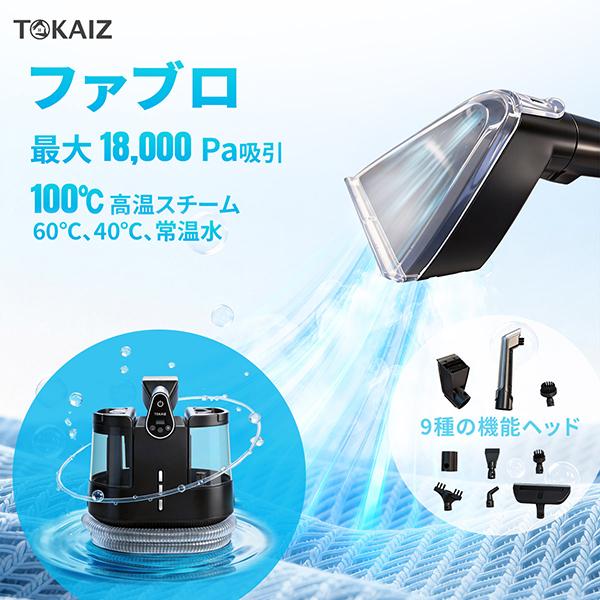 100℃スチーム×18000Pa強力吸引!TOKAIZ 最新2026 プロモデル。布製品のシミ・汚れ・ニオイを日本語音声で簡単解決。選べる温水&大容量1.8Lで家中ピカピカ!