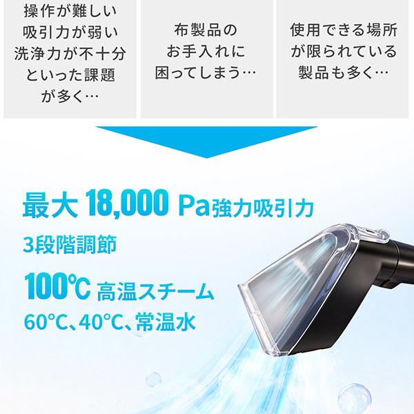 ・【100℃高温スチーム除菌】繊維の奥まで届く100℃スチームが頑固な油汚れや菌を浮かせ、ニオイの元まで徹底洗浄します。