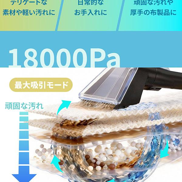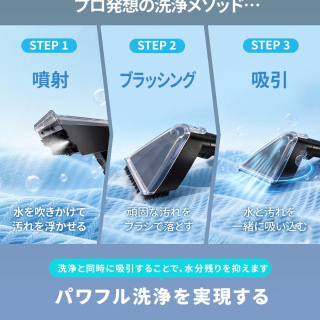 ・【18000Paの超強力吸引】業界トップクラスの吸引力で、浮かせた汚れを水分ごと一気に回収。驚きの速乾性を実現しました。