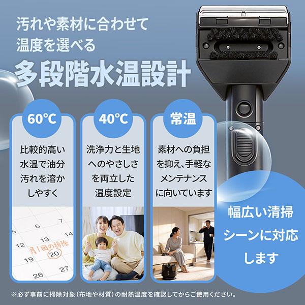 ・【4段階温水×3段階吸引】常温/40℃/60℃/100℃の温度設定と3段階の吸引力調整で、デリケートな素材から頑固な汚れまで対応。