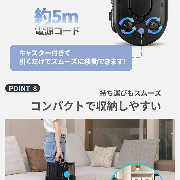 ・【大容量1.8Lタンク】給水の手間を減らす大容量設計。キャスター付きなので、重さを感じずスムーズに移動しながら掃除可能です。