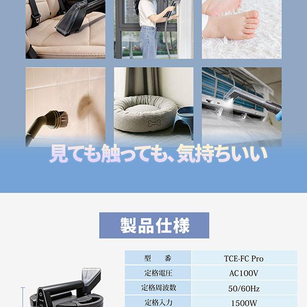 公式【選べる温水×強力噴射】スチームクリーナー リンサー清浄機 100℃高温 除菌 18000Pa 掃除機 カーペットクリーナー 日本語音声ガイダンス 40℃-100℃ 油汚れ 布製品 絨毯 ソファ イス 車内 飲みこぼし キャスター付 大容量 1.8L TOKAIZ TCE-FC Pro