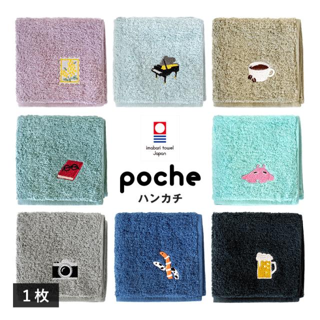 ポケットに趣味を入れて出かけよう。 ワンポイントの刺繍がかわいい今治タオルハンカチ「ポッシュ」。 チンアナゴ、メンダコ、コーヒー、カメラ、本、切手、ピアノ、ビールなど、 趣味や遊び心を感じる刺繍モチーフを豊富にご用意。 女性・男性はもちろん、お子様まで使いやすいデザインです。 日常使いはもちろん、1枚ずつ個包装されているので、送別会や記念品などの プチギフトにも最適です。 小ぶりなサイズ感で、バッグやポケットにすっぽりと収まり持ち運びもスマート。 綿100%ならではのやわらかな肌触りと、吸水性の良さが自慢です。 日本のタオル産地、愛媛県今治市で織り上げた日本製。 高品質なタオルの証である、今治タオルブランド認定マーク付きで、 安心・高品質なタオルハンカチです。
