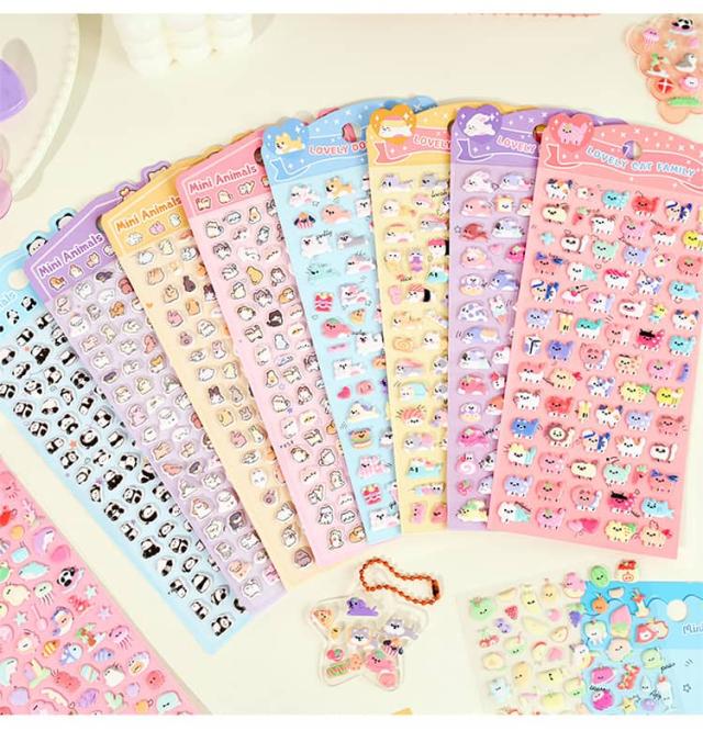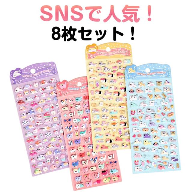 ボンボン 犬 3d 立体 立体 猫 動物 ご褒美 ぷくぷく食べ物 ぷくぷく ボンボン セット 8枚セット かわいい ドロップ ぷっくり 手帳 交換 子供 小学生 女の子 男の子