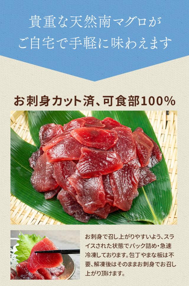 貴重な天然南マグロ!お刺身カット済だから解凍するだけで召し上がれます。
