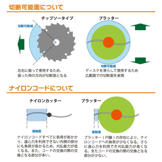 「プラッターミニ200」は、刈払機に取り付けるだけで使える次世代型ナイロンコードアタッチメントです。