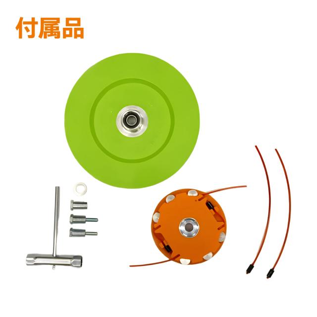 | 付属品 | ケース、ディスク、ワッシャ(Φ12-20)、ボルト(M8×1.25L[左ネジ])、ボルト(M7×1.0L[左ネジ])、ナット(M8×1.25L[左ネジ])、純正ナイロンコード(ケースにセット済み)2本、レンチボックス(13-14)、バー(Φ6-120)、純正ナイロンコード(2.4mm)2本、取扱説明書 |