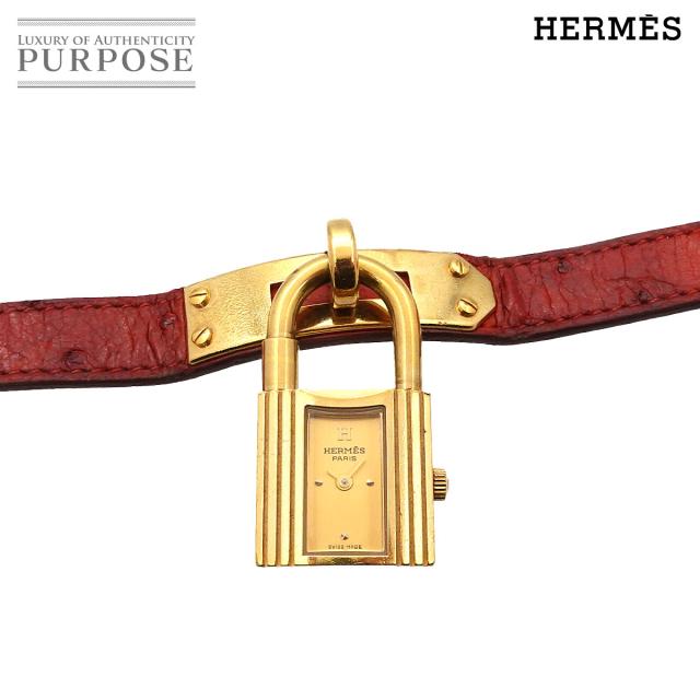 エルメス ケリーウォッチ ヴィンテージ レディース 腕時計 オーストリッチ レッド ゴールド クォーツ カデナ 90311695 【中古】時計