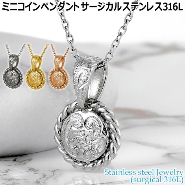 ハワイアンジュエリー ミニコイン ペンダント サージカルステンレス316L 金属アレルギーフリー 記念日 医療用ステンレス製 GPSS1393