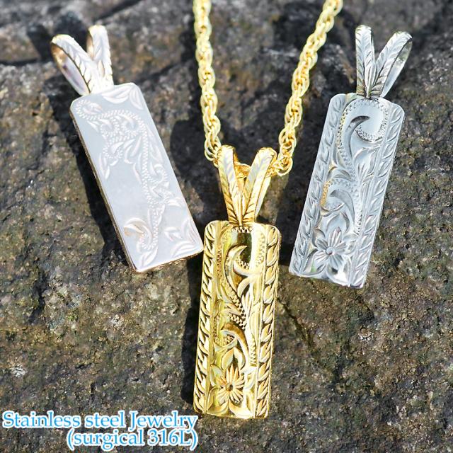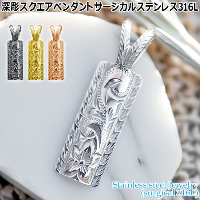 ハワイアンジュエリー 深彫 スクエア ペンダント サージカルステンレス316L 金属アレルギーフリー 記念日 医療用ステンレス製 GPSS9001P