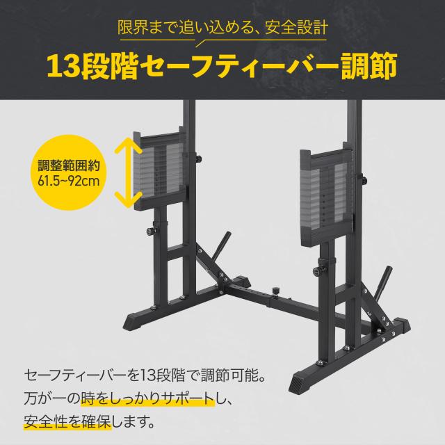 14段階高さ調節可能 高さ調整 幅調整 耐荷重300kg バーベル置き
