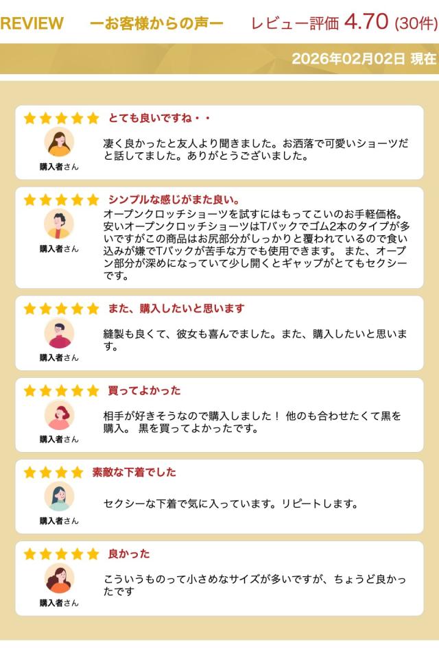 | ◇当店ではセクシーランジェリーやコスプレ衣装を豊富に取り揃えています。 個性を引き立てる魅力的なデザインと、質の高い素材を使用した商品をリーズナブルな価格でご提供。 特別な日やイベントにぴったりなコスプレ衣装はもちろん、普段使いできるセクシーランジェリーもご用意しています。 大人の魅力を引き出すアイテムを見つけて、特別な瞬間を演出してください。 ◇レディースファッションアイテムも取り扱っています。 デザイン、シルエット、素材にこだわったアイテムをお手頃価格でお届け。忙しい毎日でもおしゃれを楽しみたい方にぴったりなアイテムを提供しています。 シンプルなブラウス、流行のミニスカート、上品なミモレスカート、カジュアルなロングパンツやショートパンツ、洗練されたワンピース…など、多彩なアイテムが盛りだくさん! ぜひ当店のラインナップをご覧ください |