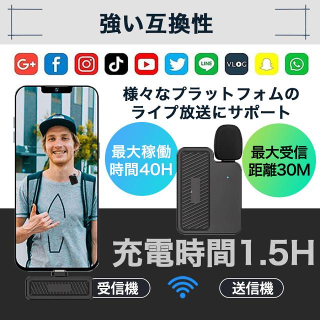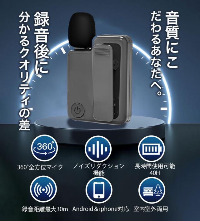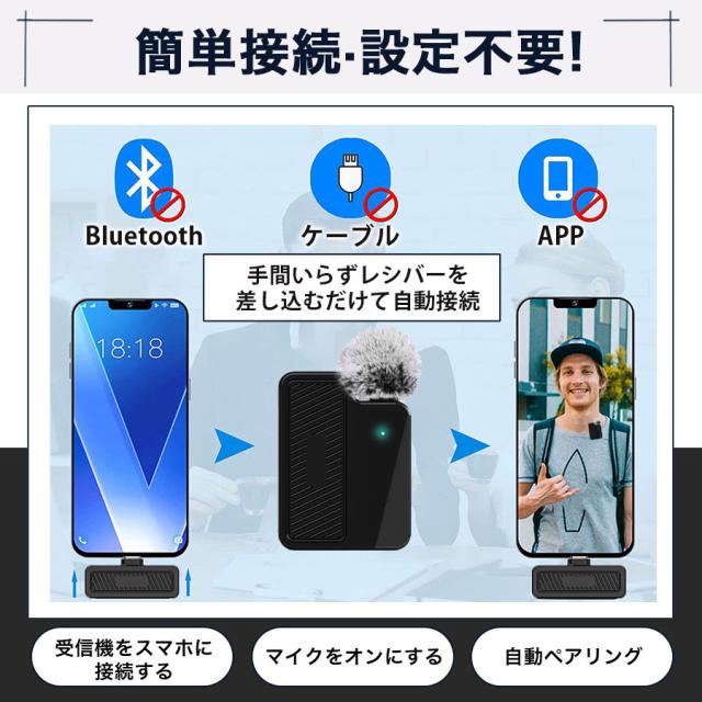 \即納/ピンマイク ワイヤレス android iphone 瞬時接続 風防付き APP/Bluetooth不要 配信 会議