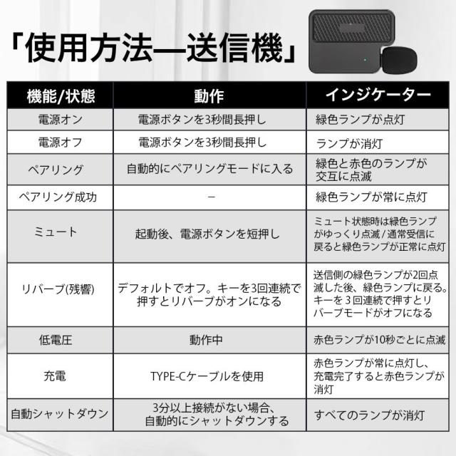 ・APP不要、操作簡単、最新の技術で、送信機と受信機が自動的に無線接続されます。