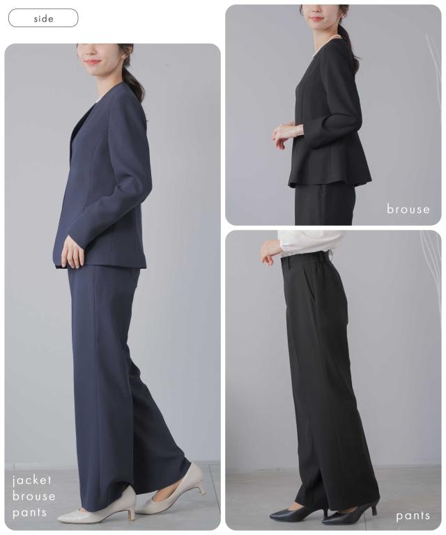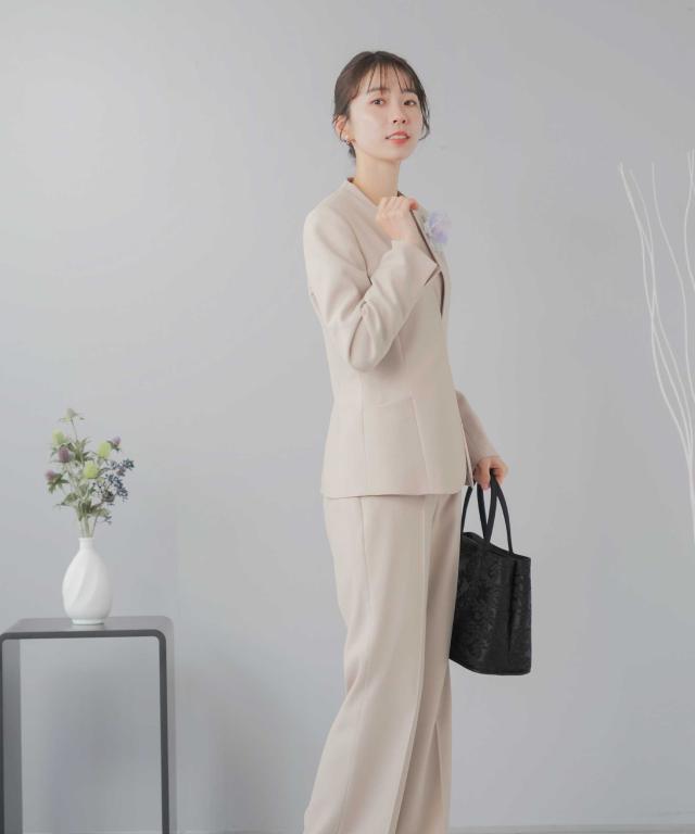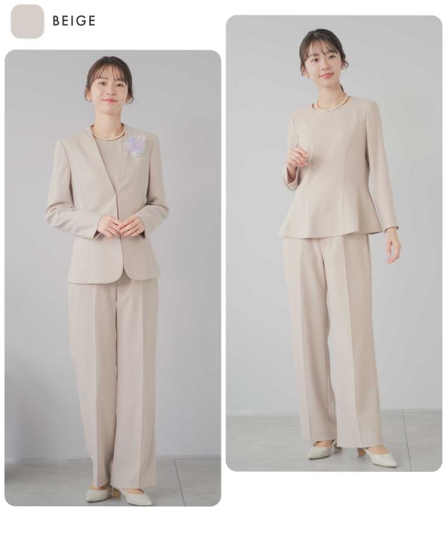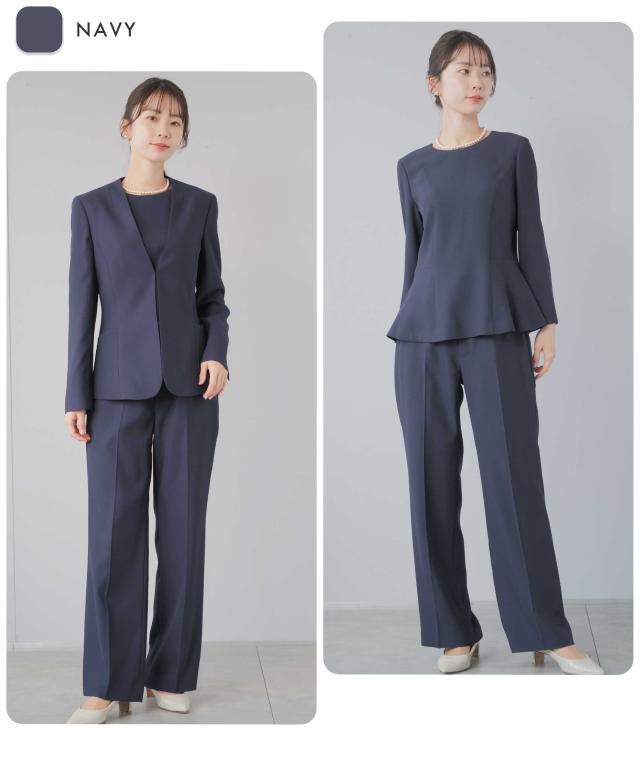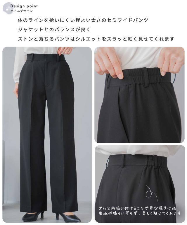 スーツ レディース 洗える セミワイドパンツ セレモニースーツ 3点セット 入学式 卒業式 礼服 ビジネススーツ ノーカラージャケット 入園式 卒園式 ママスーツ パンツスーツ セットアップ タックワイド パンツスーツ ハレの日 七五三 体型カバー 20代 30代 40代 50代