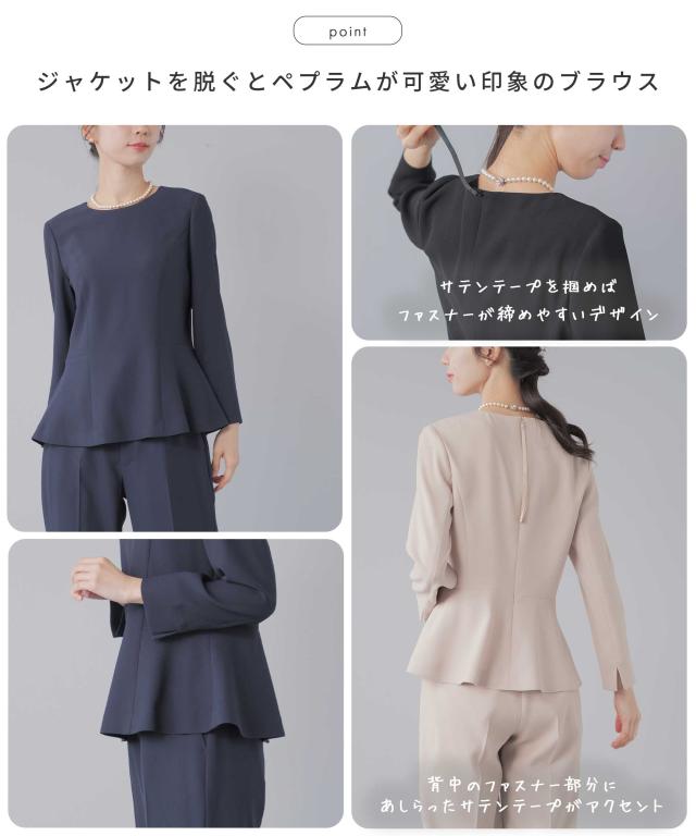 ジャケットを脱ぐとペプラムが可愛い印象のブラウス