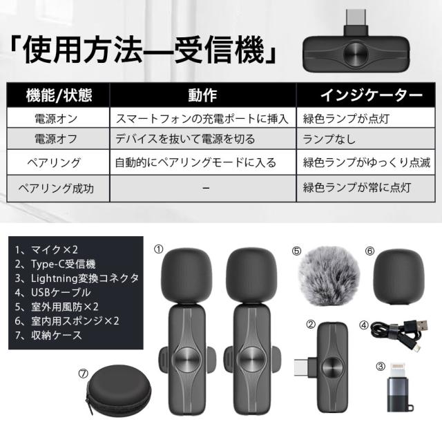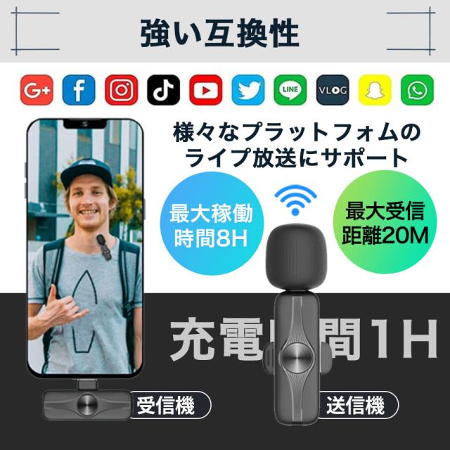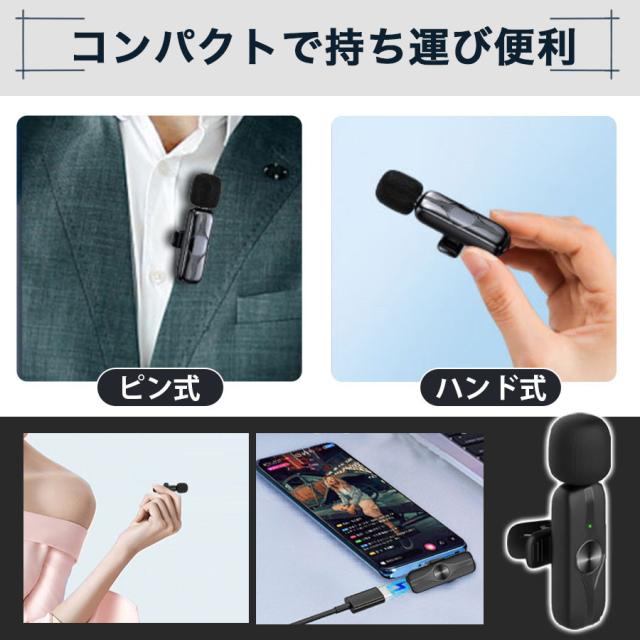 ピンマイク ワイヤレス android iphone 瞬時接続 風防付き APP/Bluetooth不要 Youtube 配信 会