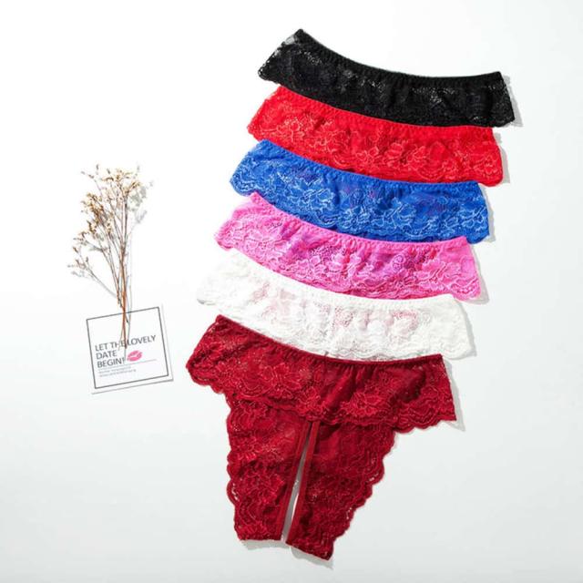 【安心梱包】中身がわからない無地梱包!穴開きレースtバック 股無し総レースショーツ オープンクロッチ ムレ防止 可愛い セクシー 透けショーツ オーバック 大きいサイズ 2L 3L