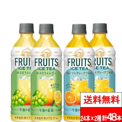 特別価格 送料無料 1ケース キリン 午後の紅茶 フルーツ&アイスティー 500ml 24本×2種 (計48本) 白ぶどうとレモン オレンジとグレープフルーツ 紅茶 アイスティー フルーツティー ビタミンC ゴゴティー 午後ティー