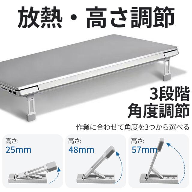 【3段階高さ調整スタンド】ノートパソコン スタンド 折りたたみ式 3段階調節 パソコンスタンド ノートパソコンスタンド ノートPC スタンド 軽量 PCスタンド スマホスタンド タブレットスタンド キーボードスタンド 角度 高さ 調節 コンパクト 持ち運び 姿勢改善 安定性抜群