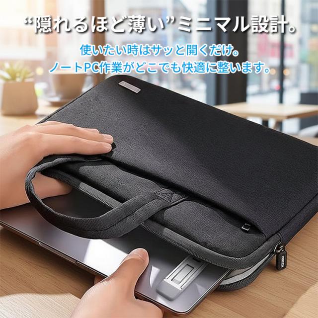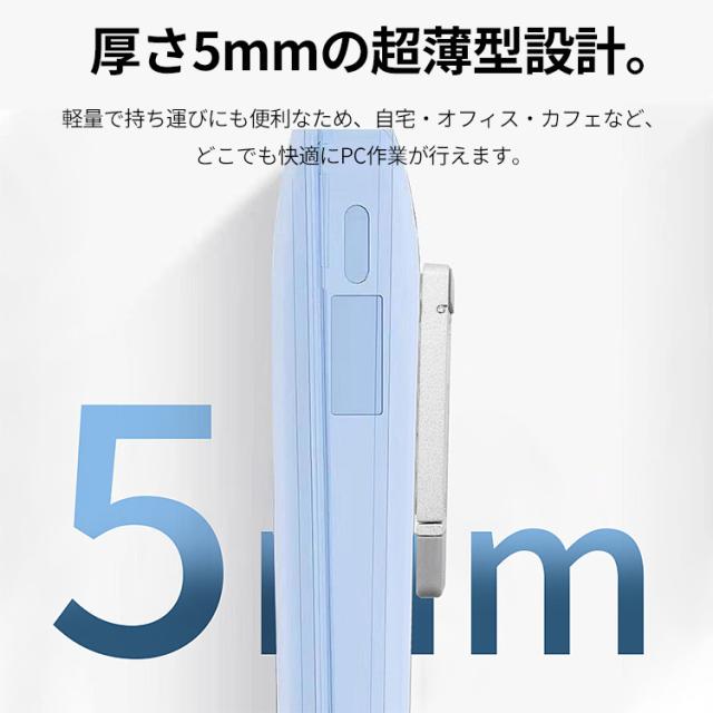 省スペースで、そのままサッと収納できます。 軽量で持ち運びにも便利なため、自宅・オフィス・カフェなど、どこでも快適にPC作業が行えます。