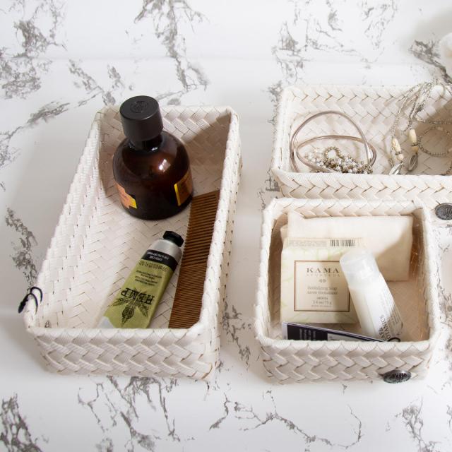 家のどこに置いても馴染むおしゃれなバスケットです。ベトナムの伝統を活かした手編みで作られており、スタイリッシュな見た目がよりスッキリと見せてくれます。リサイクルプラスチックが50%使用されているので環境にも優しいです。
