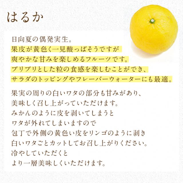 【商品名】はるか 【産地】広島県 【内容量】合計約3kg 【サイズ】M〜2Lサイズ 【配送タイプ】時期により、常温便→冷蔵便でのお届けに切り替わります。予めご了承くださいませ。 【賞味期限】生鮮品の為、賞味期限の記載なし |