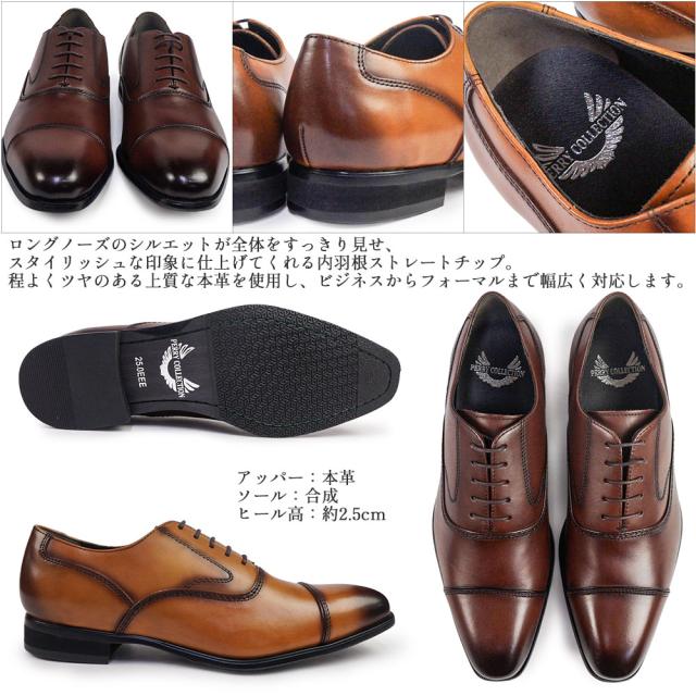 ペリー コレクション 靴 幅広 本革 PR4061 内羽根ストレートチップ メンズ ビジネスシューズ ロングノーズ PERRY COLLECTION by madras