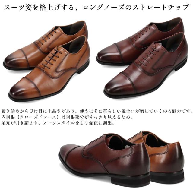 メンズ 革靴 ビジネスシューズ 紳士靴 内羽根 ストレートチップ ロングノーズ フォーマル 冠婚葬祭 ブラウン バーガンディー プレゼント ギフト