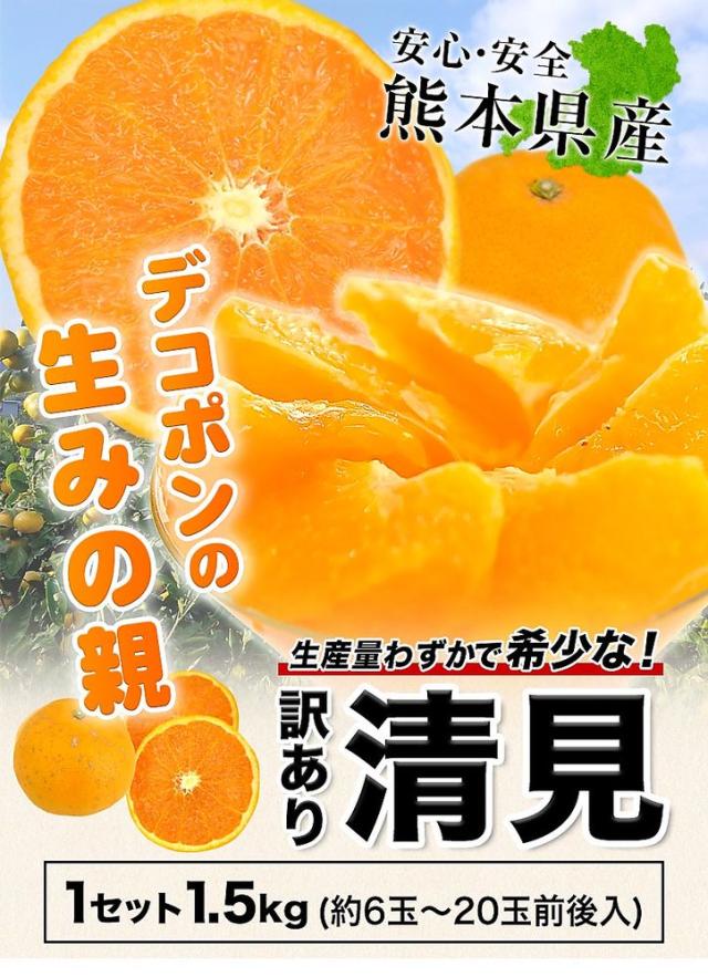 【販売解禁!】 訳あり 清見 1.5kg 柑橘 最大3セット分のおまけ付き みかん約6〜約20玉前後入 送料無料 熊本産 デコポン(不知火) はるみ せとか の生みの親 旬 2セット購入で1セット分 《3月上旬-3月下旬より発送予定》