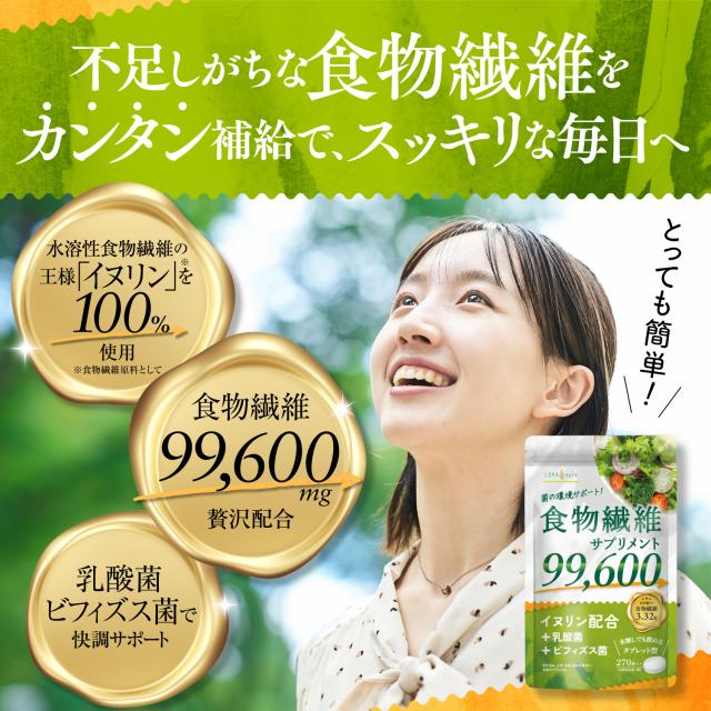 【新商品】 食物繊維 サプリ 270粒(30日分) 高濃度 イヌリン 99,600mg 水溶性食物繊維 食物繊維 乳酸菌 ビフィズス菌 サプリメント 錠剤 タイプ 水なしで飲める GMP認証工場製造 ロハスタイル LOHAStyle