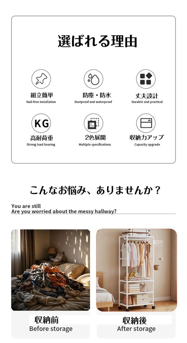 上部はコートやワンピースなどの衣類をすっきり収納。