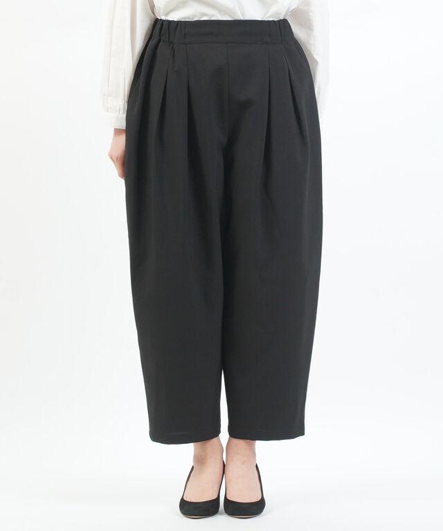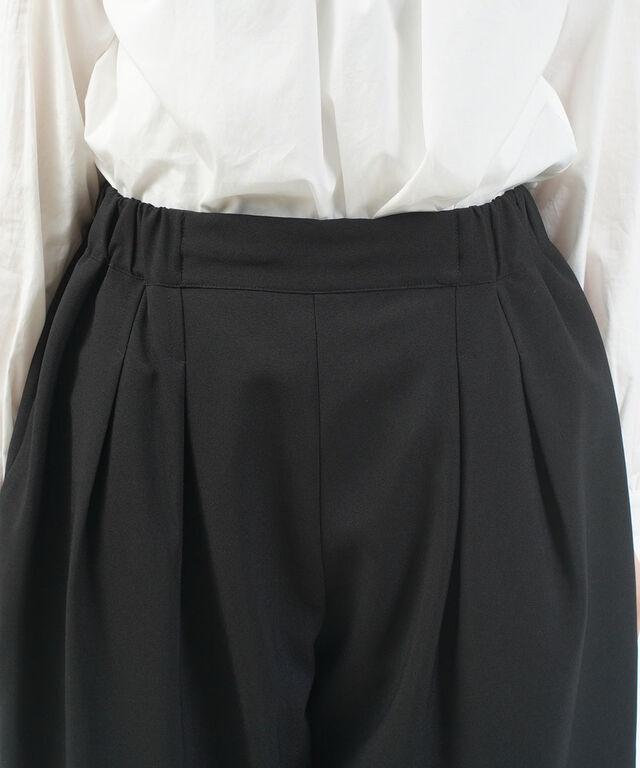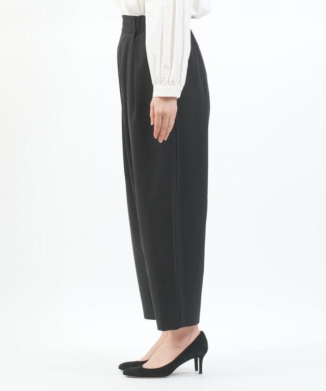 リネンライクな肌馴染みの良いポリステル素材を使用したクロップド丈のタックパンツ。
