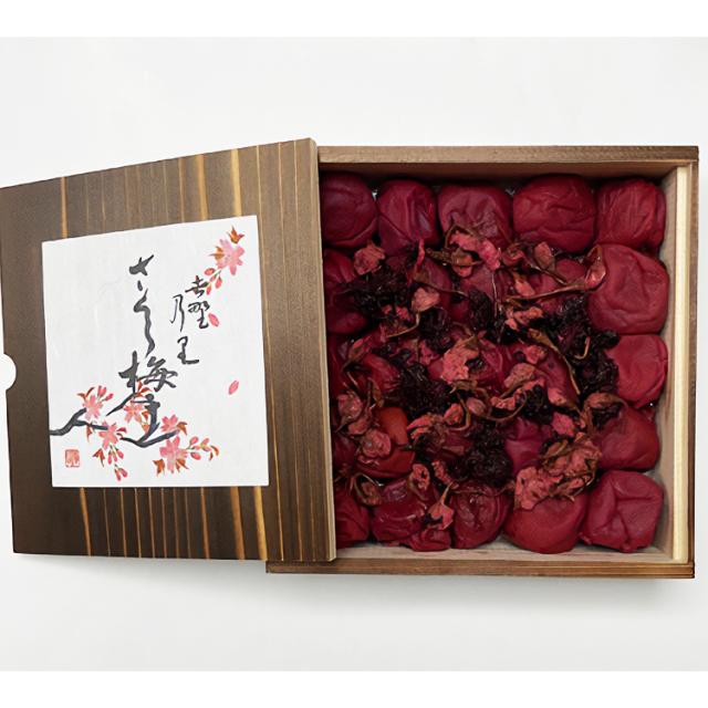 吉野の桜で彩った、しそと塩で漬けた昔ながらの梅干です。